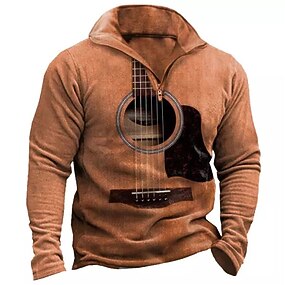 Festival de Música Homens Estampas Abstratas Guitarra Instrumento Musical Moletom com zíper Estacionar Manga Longa Moletom Meio Zíper Designer Básico Casual Impressão 3D Diário Esportes Zíper Imprimir