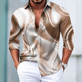 Homens Geométrica Cor gradiente Arte abstrata Camisa Social Blusa de cetim Saia Manga Longa Moda Casual Férias Dia a Dia Verão Primavera Outono Aberto para a Lateral Impressão 3D Camisas de botões