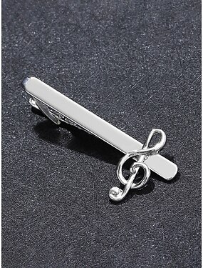 Prendedor de gravata masculino em liga metálica com formato de nota musical, acessório elegante e formal para casamentos, festas e trajes de negócios, design sofisticado em prata.