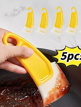 Conjunto de 5 espátulas de limpeza para cozinha, raspadores de cozinha com lâminas macias, escovas raspadoras para limpar panelas, frigideiras e pratos sujos. Utensílio de cozinha para cozinhar e