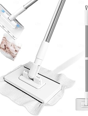Esfregão descartável sem contato com 2 panos reutilizáveis, mini esfregão para limpeza a seco e úmida, esfregão plano com encaixe fácil para espaços pequenos, instalação em 1 segundo.