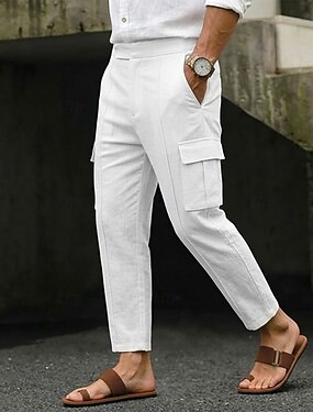 Homens Calça cargo Calças de linho Calça verão Calça casual Bolso multi Perna reta Multi-pack Tecido Conforto Respirável Comprimento total Ao ar livre Diário Para Noite Moda Roupa de rua Branco