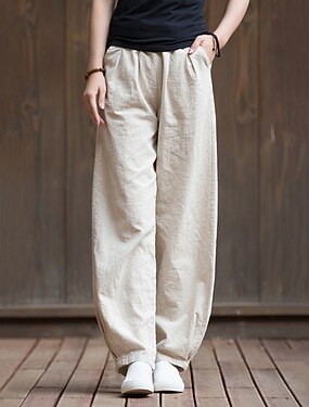 Mulheres Calças de linho de algodão chinês Calça verão Calças Harem Férias Básico Casual Comprimento total Cintura Média Tecido Com Cordão Bolsos Confortável Sem Elasticidade Diário Ao ar livre Rua