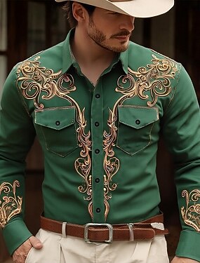 Homens Estampa floral Étnico Flores Camisa Social camisa ocidental Camisa de caubói Manga Longa Vintage retrô Casual Ao ar livre Roupa de Trabalho Primavera Outono Aberto para a Lateral Dois bolsos