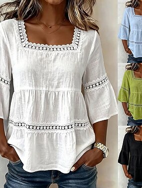 Linha A Assimétrico Longuette Vestido de festa Vestido Coquetel Vestido de convidada de casamento Vestido Para Mãe dos Noivos Manga 3/4 Colarinho de Camisa Elegante Assimétrico Formal Convidado do
