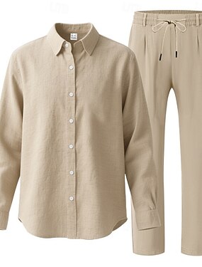 Mulheres Conjuntos de shorts Bolero Linho de algodão sintético Manga Longa Colarinho de Camisa Tecido Elegante Moda Roupa de rua Ao ar livre Férias Feriado Branco Amarelo Rosa Verão Normal