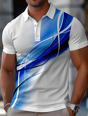 Homens Geométrico Linha Pólo Manga Curta Camisas polo Camisas de colarinho Business casual Escola Ao ar livre Roupa Diária Home Wear Botões Impressão 3D Verão Primavera Outono Azul