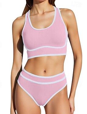 Mulheres Conjuntos de biquíni Roupa de banho 2 Peças Bloqueio de cores Elástico Sem Manga Roupa de Banho Surfe Praia Férias Verão