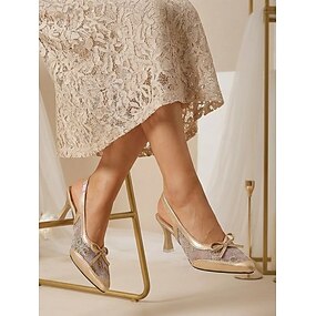 Sapatos de salto bloco champanhe para mulheres – elegantes sapatos de bico fino com tira no calcanhar, ideais para a mãe da noiva em casamentos na cidade. &eventos formais