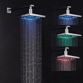 chuveiro de chuva contemporâneo, acabamento cromado montado na parede led mudanças de cor com spray de chuveiro de chuva de temperatura da água