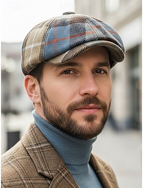 Boina masculina vintage xadrez britânica – material poliéster, várias cores, estilo retrô clássico para uso casual e ao ar livre.