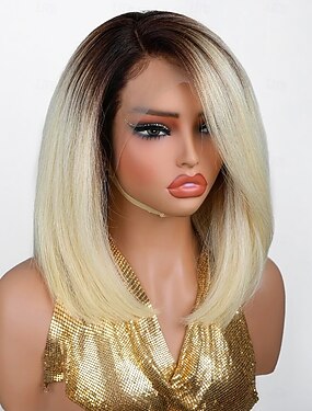 Peruca de cabelo humano com lace frontal, corte bob curto e liso, cores t4/613#, densidade 180%, para mulheres.