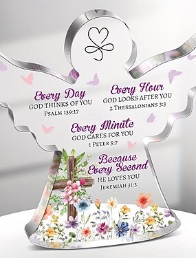 1 presente religioso motivacional, versículo bíblico, ideal para mães, irmãs, amigas e colegas, decoração de mesa em acrílico em formato de anjo.