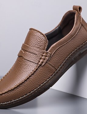 Mocassins masculinos cáqui perfurados, estilo slip-on, respiráveis e confortáveis para caminhada. Calçados leves e elegantes para uso diário, viagens, direção, escritório e lazer de fim de semana.