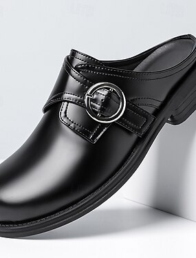 Mules masculinas pretas em couro sintético, elegantes e fáceis de calçar, ideais para o escritório, eventos formais e para o dia a dia. Confortáveis!