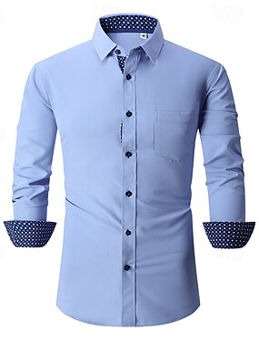 Homens Saia Resistente a rugas camisa de botão Elástico Tecido Casamento Ao ar livre Azul Claro Preto Azul Marinho Escuro Manga Longa Colarinho Verão Primavera Roupa