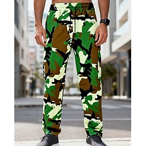 Homens Calças Cargo Calças Calça camuflada Com Cordão Bolsos Cintura elástica Côr Camuflagem Conforto Esportes Diário Moda Casual Azul Verde Tropa Micro-Elástica