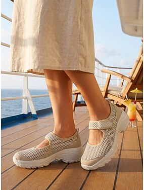Tênis feminino bege para caminhada ao ar livre com fecho de velcro - tênis de trilha com amortecimento e suporte para caminhadas, passeios no parque, viagens e uso prolongado.