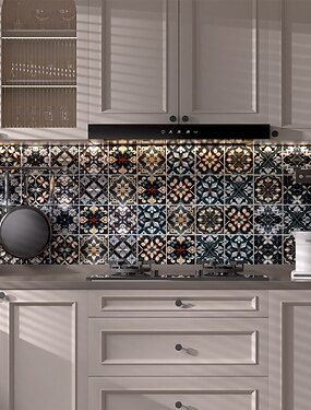 Conjunto de 24 adesivos de parede autoadesivos com estampa floral marroquina vintage, fáceis de limpar, ideais para decoração de paredes de cozinha, banheiro e sala de estar. Perfeitos para projetos