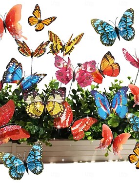 Conjunto de 20 estacas decorativas em forma de borboleta com lantejoulas e asas duplas, com hastes flexíveis. Borboletas artificiais à prova d'água para decoração de jardins, buquês, vasos de plantas