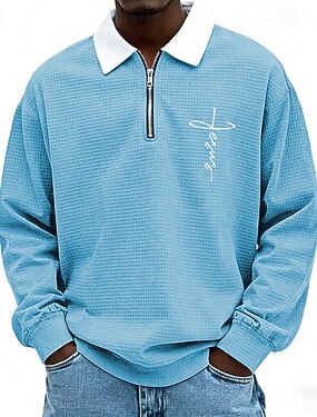 Camiseta Polo Masculina de Manga Longa com Zíper Quarto com Gráfico de Fé 'Eu Li o Capítulo Final Deus Vence'