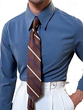 Homens Saia Camisa não de ferro camisa de colarinho camisa de botão Listrado Casamento Trabalho A D G H Manga Longa Colarinho Primavera & Outono Roupa Botão para baixo