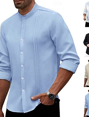 Homens Camisa Social Saia camisa de botão Tecido Ao ar livre O negócio Preto Branco Azul Céu Caqui Manga Longa Colarinho Chinês Verão Primavera Roupa Botões