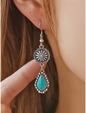 Brincos femininos boêmios de liga metálica turquesa, joias pendentes leves, perfeitas para férias na praia, uso casual no dia a dia e acessórios de verão.