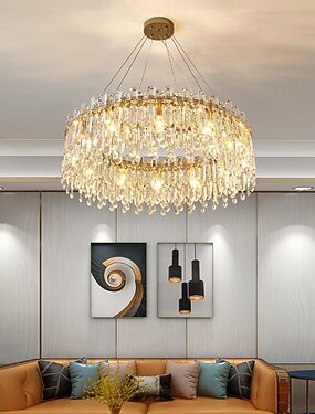 50/60/80 cm candelabro led cristal luz de teto design círculo design exclusivo luzes de montagem embutida led de aço inoxidável estilo nórdico 110-120v 220-240v
