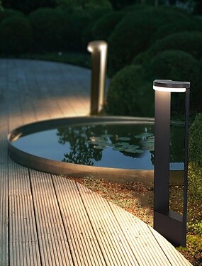 Luminárias de caminho à prova d'água, modernas, para gramados e jardins, com acabamento fosco em aço inoxidável. Ideais para caminhos, passarelas e paisagens de jardins.