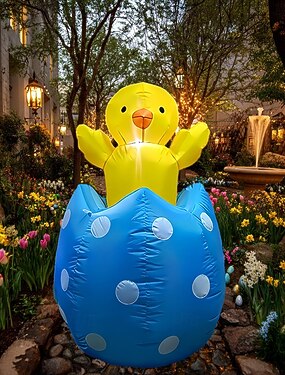 Decoração inflável de Páscoa com luzes LED para uso interno e externo. Altura ajustável para quebrar a casca de um pintinho. Ideal para pátios, jardins e festas de Páscoa, criando uma atmosfera