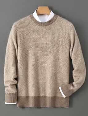 Suéter masculino premium de lã pura e cashmere, gola redonda, modelo clássico, macio, quente e respirável.