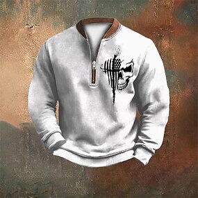 Homens Moletom Moletom com zíper Preto Branco Vermelho Azul Marinha Cinzento Meio Zíper Bloco de cor Caveiras Bandeira americana Half Zip Imprimir Diário Desportos e Ar livre Feriado Poliéster