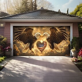 Decorações de Porta do 4 de Julho Capa de Porta da Garagem Americana Patriótica Banner Exterior Águia Grande Fundo para Decorações de Parede da Garagem ao Ar Livre