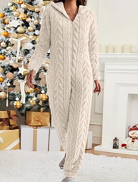 Homens Loungewear Macacões Pijamas Macacão Folhas Simples Casual Conforto Casa Diário Algodão Conforto Respirável Capuz Manga Longa Bolsos Outono pó branco Preto