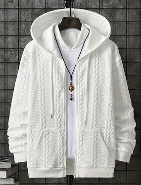 Homens Moletom Full Zip Hoodie Preto Branco Com Capuz Tecido Jacquard Bolsos Estriado Textura Desportos e Ar livre Diário Feriado Poliéster Roupa de rua Básico Casual Primavera Outono Roupa Moletons