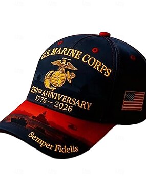 Boné de beisebol comemorativo do 250º aniversário do Corpo de Fuzileiros Navais dos EUA (1775-2025), boné militar bordado com a inscrição "Semper Fidelis" e a bandeira americana, vermelho. &Boné azul