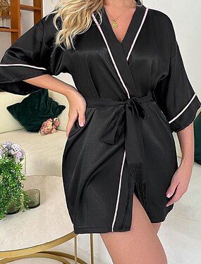 Mulheres manto Casual Macia Seda Cor imaculada Renda Frente Única Diário Casa De Cama Meia Manga Decote V Preto Branco Rosa Vinho Azul Marinha Verão Ajuste Largo