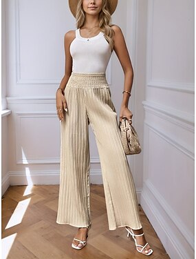 Mulheres Calças Calça casual Calça verão Calças de praia Férias Moda Casual Diário Comprimento total Cintura Alta Côr Sólida Tecido Com Cordão Bolsos Perna larga Conforto Macio Respirável Sem