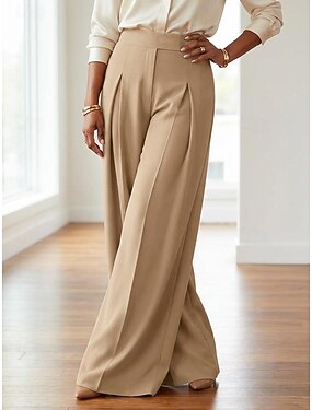 Mulheres Perna larga Calças Moda Roupa de rua Comprimento total Cintura Alta Tecido Bolsos Levantamento de Butt Ruched Corte alto Conforto Respirabilidade Macio Micro-Elástica Férias Rua Diário
