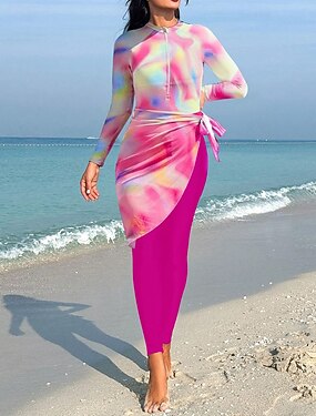Mulheres Anti Atrito Roupa de banho Maiôs Tintura Tie Dye Zip Up Ultra Leve (UL) Proteção UV Elástico Manga Longa Roupa de Banho Surfe Snorkeling Inverno