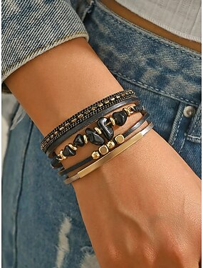 Pulseira feminina boêmia de couro sintético com fecho magnético, várias cores, perfeita para férias na praia, uso casual no dia a dia, acessório moderno no estilo boho.