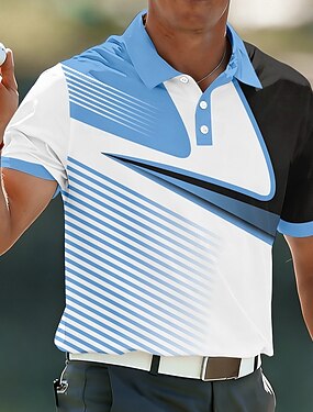 Homens Geométrico Golf Camisas Polo Esportivas Manga Curta Camisas polo Camisas de colarinho Casual Roupa Esportiva Feriado Impressão 3D Botões Malha Respirável Verão Primavera Azul Azul Céu Amarelo