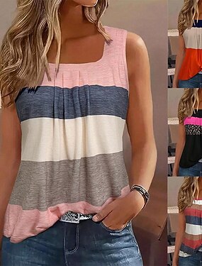 Mulheres Malha Íntima Imprimir Listrado Moda à moda Casual Sem Manga Decote Quadrado Tops regulares Diário Para Noite Final de semana Preto Rosa Vermelho Azul Marinha Verão Primavera