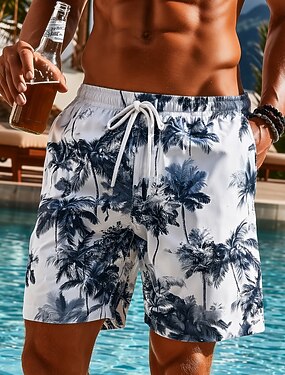 Homens Coqueiro Plantas Tropicais Shorts de Natação Bermuda de Surf Calção de Banho Cintura Média Tropical Roupa de rua Havaiana Férias Com Cordão Forro de malha Cintura elástica Designer Roupa