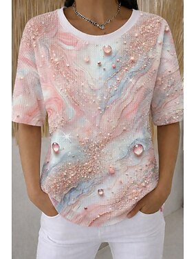Mulheres Camiseta Waffle Tops tricotados texturizados Tops de verão Imprimir Gráfico Geométrica Abstrato Vintage à moda Clássico Manga Curta Gola Redonda Decote Redondo Tops regulares Casual Diário