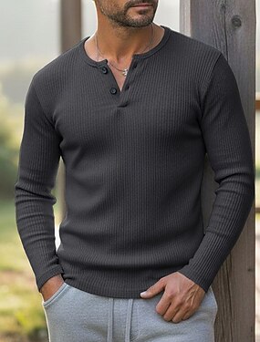 Homens Camiseta Camisa Henley Camiseta de malha waffle T-shirt Camisa de manga longa Manga Longa Bloco de cor Cor Única Moda Designer Básico Patchwork Henley Casual Férias Rua Primavera & Outono