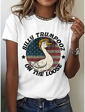 Dia da Independência Americana Mulheres Camiseta Imprimir Gráfico Bandeira americana Vintage à moda Clássico Manga Curta Gola Redonda Decote Redondo Tops regulares Diário Final de semana Branco