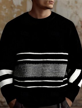 Homens Pulôver suéter Suéter de malha Estriado Tricotar Tops regulares Tricotado Riscas Gola Redonda Moda Básico Férias Roupa Diária Roupa Outono Inverno Preto S M L