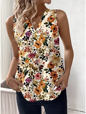 Mulheres Malha Íntima Floral Gráfico Plantas Elegante Vintage Tropical Sem Manga Decote V Tops regulares Diário Azul Roxo Laranja Verão Primavera